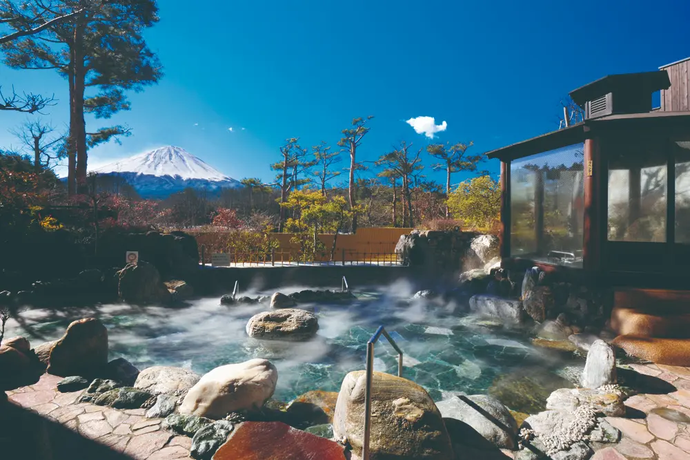 新屋山神社から車で約20分の場所にあり、雄大な富士山を眺めながら温泉に浸かる贅沢なスポットです。